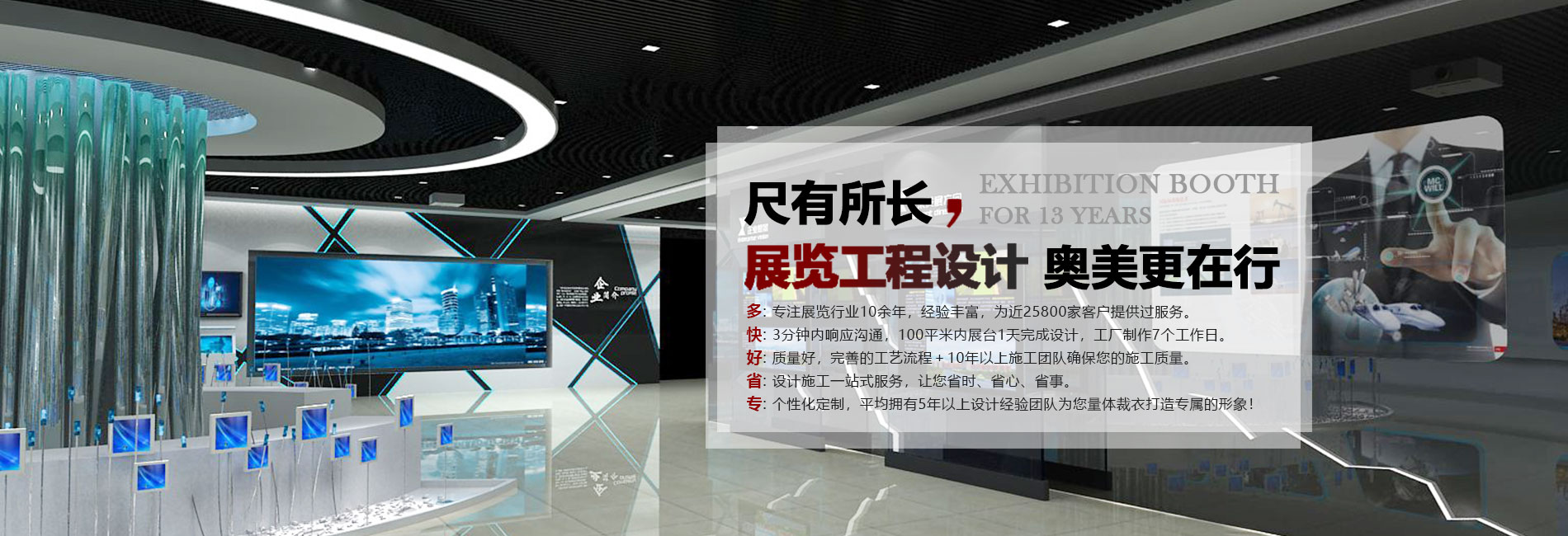 安徽奧美展覽工程有限公司總部位于上海,成立于2005年,專注展覽領域10余年,安徽奧美展覽工程有限公司位于合肥,注冊資金3000萬元。業務范圍包括:各行業展覽會展臺設計與搭建;企業展廳、陳列規劃展示館、博物館等固定展廳設計與施工及配套多媒體設備;品牌形象專柜、專賣店和店中店的設計及施工。所有設計團隊成員均科班出身,具有國內美術學院美術專業背景,平均從業經驗5年以上。擁有多支施工隊伍,自設工廠10余年施工經驗可將設計圖還原98%以上。公司已取得中國展覽館展覽工程一級資質、展陳工程設計與施工一體化一級資質、建筑裝修裝飾工程專業承包二級資質、安全生產許可等多項資質和社會各界相關領域頒發的榮譽...